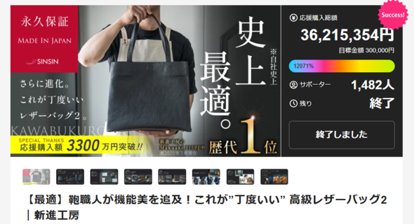 その結果、新進工房では過去最高となる3600万円を超える応援購入金額を達成したプロジェクトも生まれました。