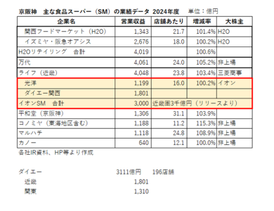 しかし、京阪神にはM&Aによって逆転を狙える規模の中堅スーパーが少なく、イオンが得意としてきたM&Aで一気に逆転するための有力な候補が見当たらない。こうした事情もあり、イオンが京阪神でトップシェアを達成するハードルは高いだろう。今後のシェア拡大に向け、まずはダイエーと光洋の統合によって競争力を高める段階にあるのかもしれない。