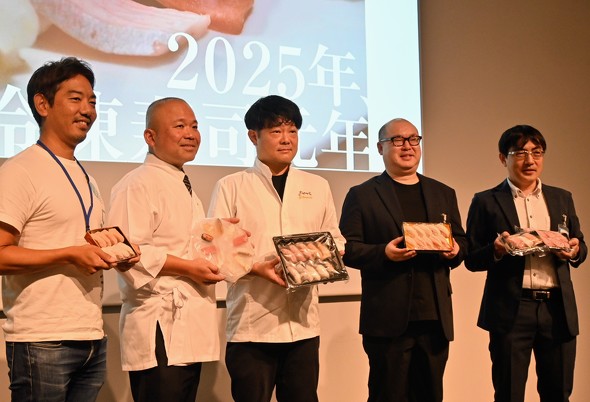 冷凍ソリューション技術を提供するデイブレイク(東京都品川区)は9月19日、東京イノベーションベースで「冷凍寿司イベント」を開催した。同社は2025年を「冷凍寿司元年」と位置付け、高品質な冷凍寿司の普及を目指す考えを示した。イベントには日本の老舗寿司店や関連企業が参加し、冷凍寿司の現状と将来性について意見を交わした。