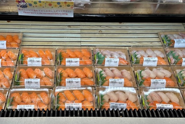 現地では、店舗のバックヤードで解凍して販売しており、価格はサーモン8貫で18ドル前後。現地の握りたて寿司と同じ価格帯かつ同じ扱いで販売しており、売れ行きは堅調だという。