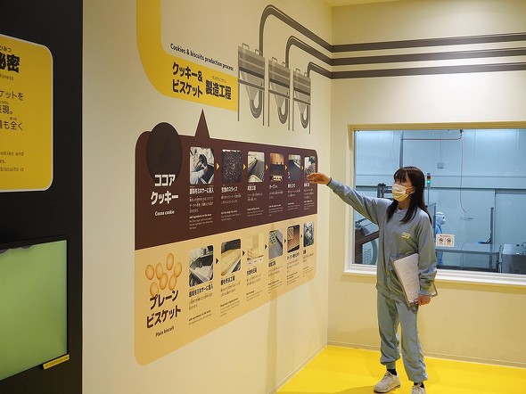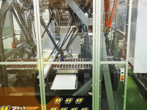ファクトリーでは、生産プロセスが一通り見学できるようになっている。今までもテレビ番組などでブラックサンダーの製造工程は紹介されてきたが、一般公開は今回が初めてだ。
