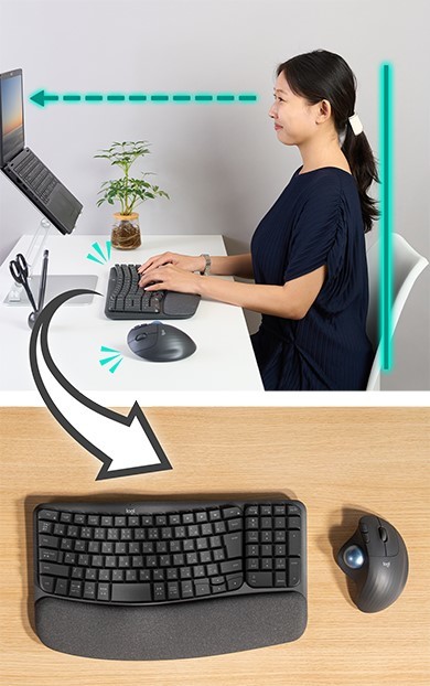 PC作業時の姿勢や周辺機器にこだわりのある人におすすめなのが、ハイエンドモデルのエルゴノミクスマウス「MX Ergo S」とエルゴノミクスキーボード「ERGO K860」だ。