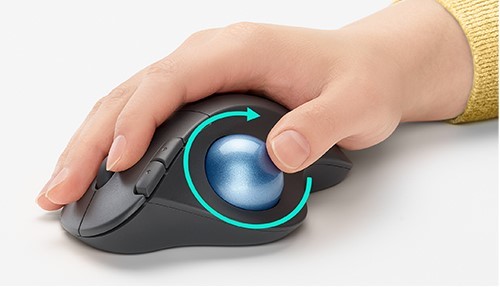 ロジクールのエルゴノミクスマウスは、親指の部分に付いているボールを回してポインターを動かす「トラックボール」方式を採用している。ポインターを動かす際にマウス自体を動かす必要はなく、親指でボールを回すだけで操作できる。通常のマウスと異なり腕を動かさないため、腕や手首にかかる負担が少ない。