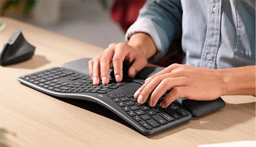 エルゴノミクスマウスやエルゴノミクスキーボードは、人間工学に基づいて人の手の形や動きを徹底的に研究し、体に無理な負担がかからない形状や操作方法を追求して設計されている。中でもロジクールの製品は、マウスの親指の部分にボールが付いていたり、キーボードがカーブ形状になっていたりと、特殊な形になっている。