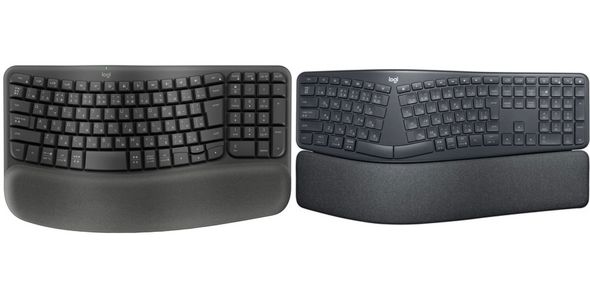 ロジクールのエルゴノミクスキーボードは、人間工学に基づいて設計された立体的に波打った特殊なカーブ形状が特徴だ。このカーブのおかげで、腕を机に置いた時に自然なハの字の角度のままでタイピングでき、長時間のタイピングでも圧倒的に疲れにくくなる。