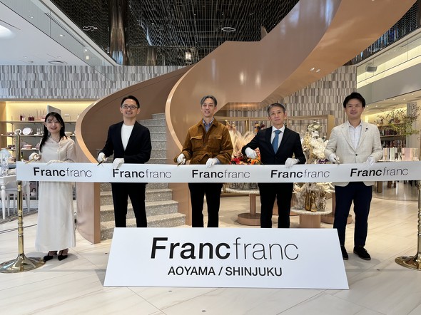 Francfrancの井上耕平社長は、「男女関係なく幅広いラインアップを展開していた時代から、シンプルなデザインであったり、ここ数年のように女性らしいデザインが多くなったりと、常に変化・進化を続けてきた。青山店、新宿サザンテラス店のリニューアルを新たなスタートとして、さらに進化していく」と意気込んだ。