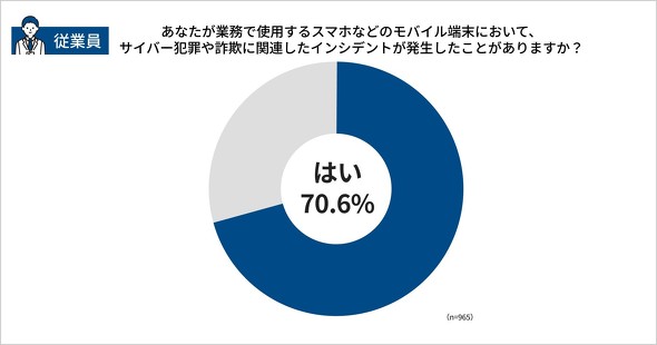 従業員では、70.6%が「業務で使用するスマートフォンなどのモバイル端末でインシデントが発生したことがある」と答えた。
