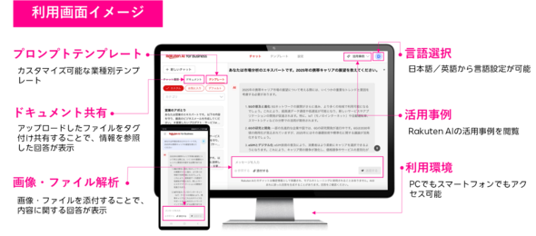 こうして社内で培った技術力やノウハウを詰め込み、法人向け生成AIサービスとして提供されているのが「Rakuten AI for Business」だ。