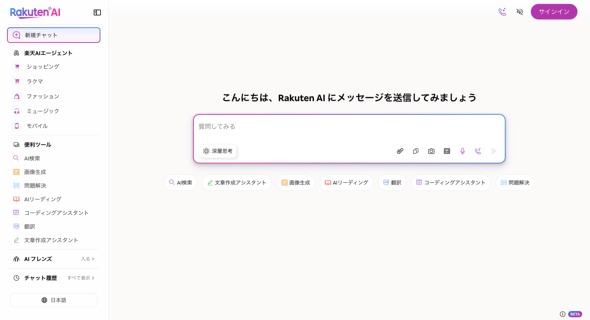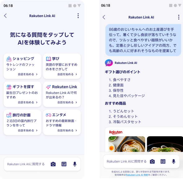 この「Rakuten AI」は、楽天モバイルユーザー向けの「Rakuten Link」アプリに搭載されているほか、ベータ版のWebアプリケーションなら、ブラウザ上で誰でも利用することができる。