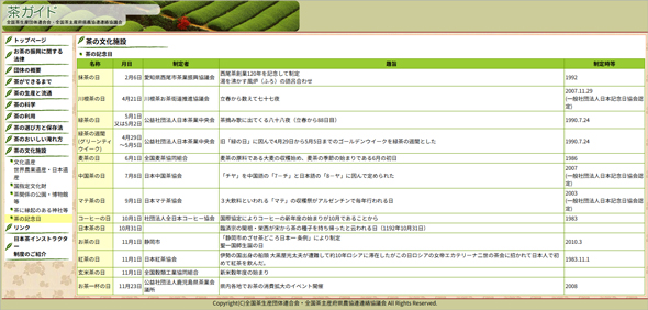 ちなみに、10月31日は「日本茶の日」という記念日である。全国茶生産団体連合会・全国茶生産府県農協連絡協議会の公式Webサイトによると、これはその栄西禅師が1192年10月31日に中国から茶の種子を日本へ持ち込んだことに由来するとしている。