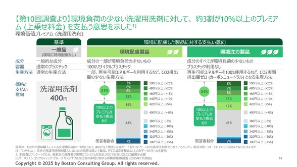 ただし、BCGは「本調査はアンケートのため、各割合の消費者が実際にプレミアム(上乗せ料金)を支払うわけではない」と留意点を示した。