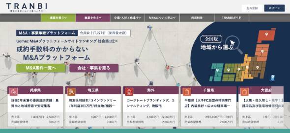 中小企業向けの事業承継・M&Aプラットフォームとして、2011年にサービスを開始したトランビ。同社によると、事業の売り手と買い手をWeb上でマッチングさせるプラットフォームは、日本初だったという。