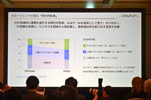 AI開発のコンサルティング事業を手掛けるスキルアップNeXt(東京都千代田区)の田原眞一社長はそう語り、会社組織全体にAI活用、ひいてはAIエージェントを定着させることの緊急性を訴えた。