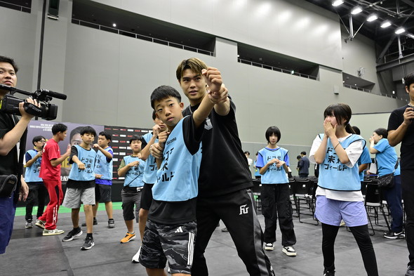 未来フィールドの中でも、大橋ボクシングジムとのコラボは実に4回目となる。全国244組・488人の応募から選ばれた小学5年生〜中学3年生と、その親の20組・40人が参加した。