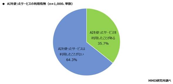 AIを使ったサービスを「利用したことがある」と回答した人は、全体の35.7%だった。