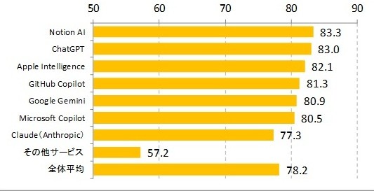 ICT総研が実施した調査では、Notion AIがChatGPTを上回り、利用者満足度1位を獲得した。