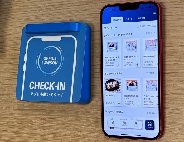 店舗では、レジに並ばずに決済まで完了できるスマホレジ機能を備えた「オフィスローソンアプリ」を導入した。アプリ内に決済データを集約し、個人の購買履歴に応じた商品のレコメンドなども行う。