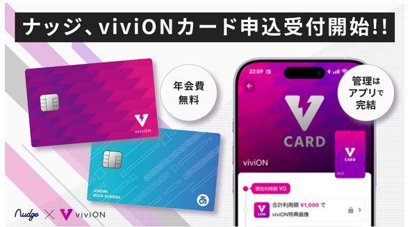 CCaaSの第1号案件となるviviON(東京都千代田区)は、同人誌通販サイト「とらのあな」などを運営し、二次元コンテンツを愛好するユーザー層に強い支持基盤を持つ。専用アプリ「viviONクレカ by Nudge」では、同社の会員IDとカードをひも付けることで、決済額に応じたポイントの倍付けや、特典画像を配布できる。アプリを通じたアンケート配信や、決済時のプッシュ通知をカスタマイズするなどして、キャンペーン告知に活用する。従来の提携カードでは難しかったファンとの継続的な接点づくりを狙う。