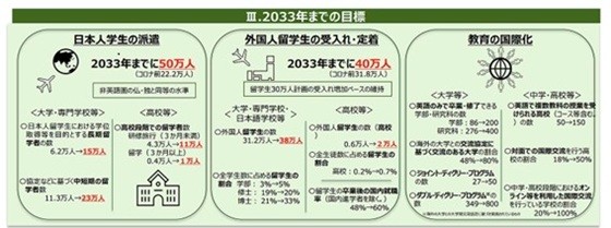 この現状に危機感を抱いた日本政府は、2023年4月に「未来を創造する若者の留学促進イニシアティブ」(通称:J-MIRAI)を取りまとめ、2033年までに高校生の留学者数を12万人に引き上げる野心的な目標を設定した。短期の研修旅行が4万3000人から11万人へ、3カ月以上の留学が4000人から1万人へと、いずれも2.5倍程度増やすことを目指している。
