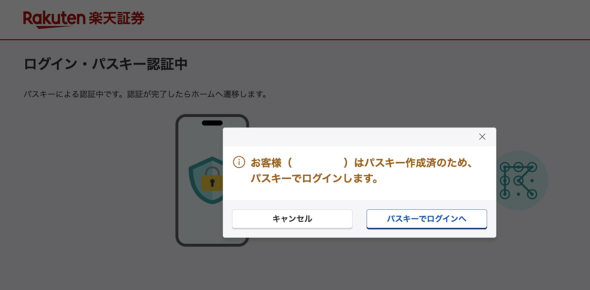 これに対し、楽天証券は異なるアプローチを取る。パスキーを登録すると、以降は原則としてIDとパスワードではログインできなくなる。