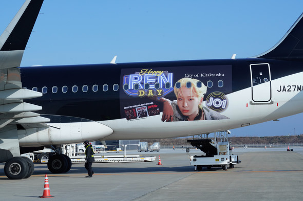 「JO1」川尻蓮さんのラッピング飛行機では、川尻さんの写真とともに「Happy REN DAY」といった文字が掲載された。