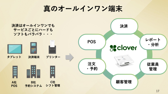 Fiservは中小事業者向け決済・店舗DXサービス「Clover」を日本で初めて展開する。決済端末の導入にとどまらず、店舗運営から資金繰りまでを一元管理する「真のオールインワン」で、キャッシュレス後半戦に挑む。