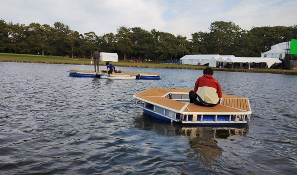 台船(だいせん)という言葉を聞いたことがあるだろうか。エンジンを持たない「平たい船」のことで、作業や運搬などのために浮かぶ作業台として使われていることが多い。レジャーでも使われていて、平らなデッキの上で釣りをしたり、水上のイベントを実施したり、バーベーキューを楽しんだり。いわば“水上テラス”のように使われているが、問題もある。コストだ。