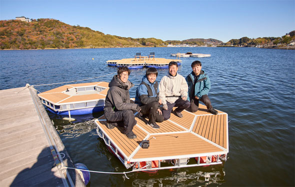 大型の台船は、運搬や設置に手間がかかるので、気軽に扱えるモノではない。「もっと小回りが利いて、必要に応じて広げたり、縮めたりできる台船をつくれないか」。開発リーダーの水谷真さんはこのように考え、Sixフロートの開発に着手した。