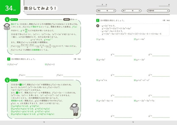 また、学校教育では学ぶ順番が定められているが、大人の学び直しにその制約はない。そこで中学3年生程度の内容を起点に、必要な単元に絞り込み、効率的に「微分・積分」へとつなげる構成にした。関連性の薄い単元は思い切って省き、最短距離で到達できるようにした。
