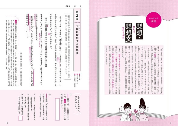 『解きながら楽しむ 大人の源氏物語』は、古典を“教養として味わう”ことに軸足を置いた。源氏物語に登場する言葉を解説した後、その語が使われている本文を読み、設問を解く構成だ。学校で重視されがちな古典文法や細かなルールは扱わず、語注や対訳を充実させることで、苦手意識のある読者でも取り組みやすくしている。