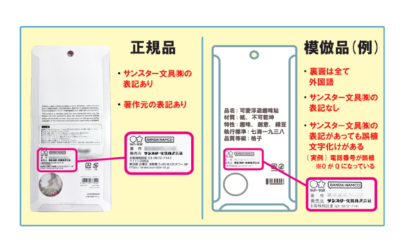最近では偽物も出回っている。中国語や韓国語などの外国語表記がある商品が偽物として確認されており、需要の高さに便乗した模倣品の流通が問題となっている。販売元であるサンスター文具は、公式WebサイトやSNSを通じて正規品との見分け方を公開し、注意喚起を行っている。