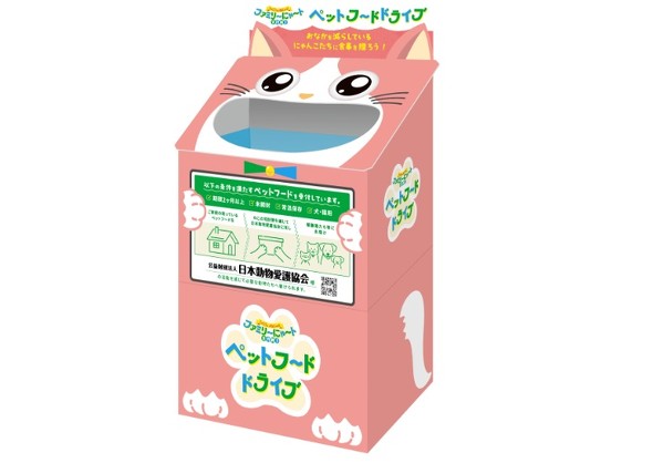 ファミマは社会貢献活動にも取り組む。家庭で余っている未開封のペットフードを店舗で回収し、保護猫などの食事支援につなげる「ペットフードドライブ」を実施する。
