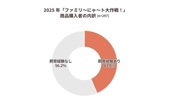 ファミマのアプリ「ファミペイ」の会員1502人を対象に実施した調査では、「猫が好き」と回答した人は69.8%に上った。一方で、2025年の猫の日キャンペーンで商品を購入した人のうち、56.2%は「猫を飼ったことがない」層だった。