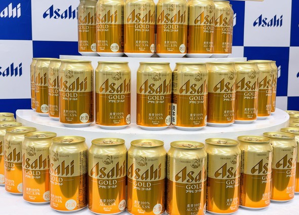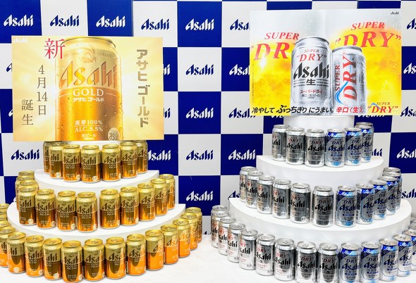 アサヒ ゴールドは、麦とホップと水のみを使用することで、ビール本来のおいしさを追求した商品だという。従来品と比べて1.5倍の麦芽を使用する。2026年の販売目標は400万箱(大瓶633ミリリットル×20本)とした。価格帯はアサヒスーパードライと同等とする。