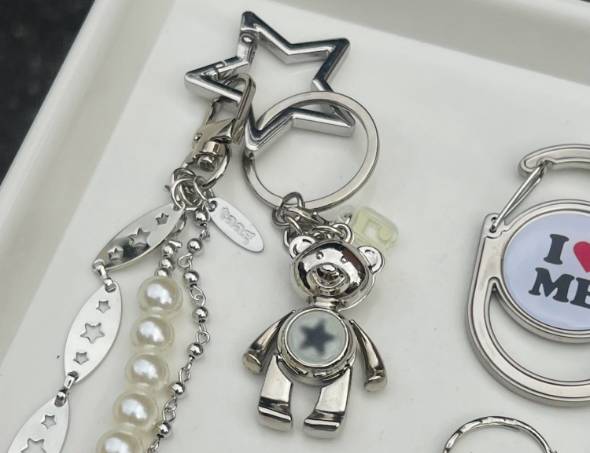 種類は数百にも及び、ハートやリボン、動物モチーフ、アルファベットが印字されたもの、シルバーのチェーンなど。とにかく豊富なデザインを用意して、個性や気分に合わせて唯一無二のキーリングを作れることをウリにしている。