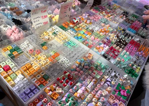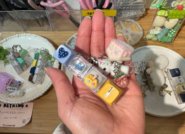 また、筆者が訪れた新大久保のカスタムキーリング販売店も、平日にもかかわらず、多くの女性であふれていた。女性同士のグループが目立つが、中にはカップルで訪れている人も。同店では「キーボード」のチャームを多く扱っていて、押すと光るタイプもある。見た目のかわいさに加え、「カチャカチャするのがクセになる」として人気を集めているようだ。