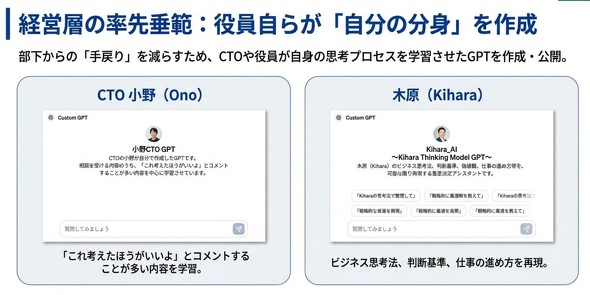 「カスタムGPT」を活用し、上司自身の判断軸をAIに埋め込む取り組みも進めている。