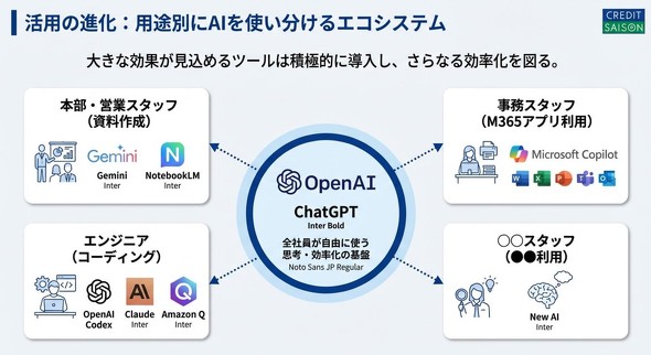ChatGPT Enterpriseを全社員に配布したクレディセゾンだが、今や他のAIも積極的に使い分けている。