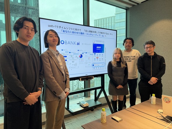 住信SBIネット銀行が2月27日にベータテストを始めるAIエージェント「NEOBANK ai」は、声やチャットで指示するだけで振込や家計分析ができる。開発したのはわずか5〜6人の若手エンジニアだ(筆者撮影)住信SBIネット銀行が開発した「NEOBANK ai」は、生成AIとの対話を通じて利用者の目的をくみ取り、必要な操作画面をその場で自動生成するアシスタント機能である。同社はこれを「ジェネレーティブUI」と呼ぶ。