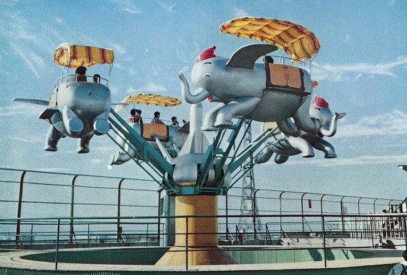 すでにその時から屋上遊園地は存在していた。当時は動物園や展望台、水族館なども併設され、展覧会も開催されていたという。太平洋戦争時に空襲で全焼したが、戦後に復活した屋上に子ども向けの遊具などが置かれ、今の屋上遊園地の原型ができた。