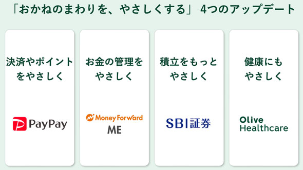 PayPay連携、マネーフォワード搭載、SBI証券との新プラン、ヘルスケア参入という4つのアップデートを一斉に打ち出した。いずれも外部企業との協業である。各分野のナンバーワン企業と組むという当初からの路線はそのままに、その照準を若年層のポイ活から全世代の生活課題へと大きく広げた。