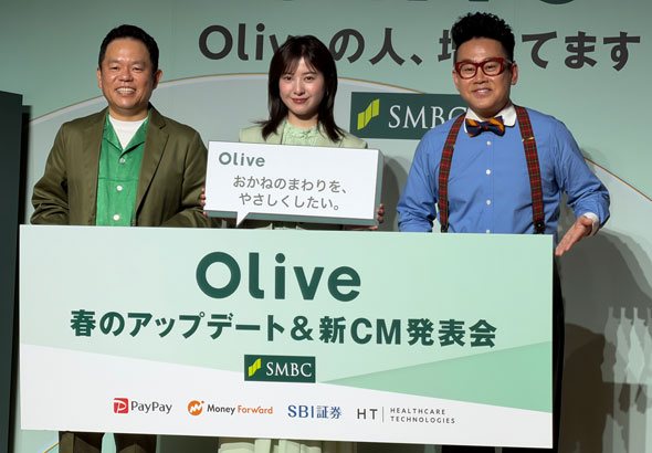発表会では新CMもお披露目された。左からお笑いコンビ・ダイアンの津田篤宏さん、吉高由里子さん、“PayPayの人“宮川大輔さん。吉高さんとダイアン津田さんは「Oliveの人〜スマホ」篇と「Oliveの人〜PayPay」篇に出演する(撮影・筆者)もっとも、リスクもある。自前で持たない以上、パートナーとの関係次第でサービスの質や継続性が左右される。PayPayとの排他的な優遇関係がいつまで続くか、マネーフォワードとの資本業務提携がどこまで深化するか。この連合の強さは、結束の持続性にかかっている。