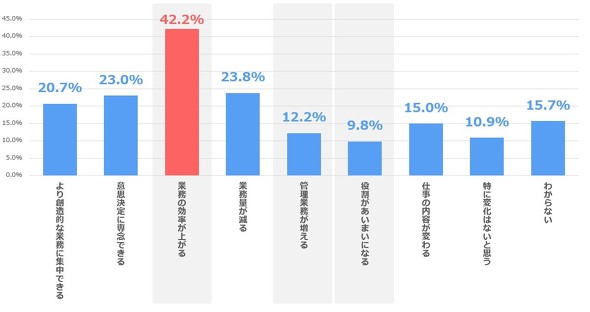 一方で「管理業務が増える」(12.2%)、「役割があいまいになる」(9.8%)といった懸念点も挙げられた。