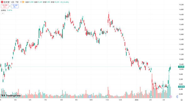 任天堂を巡っては、AIブームに伴うメモリ部材価格の高騰による利益率懸念、トランプ政権の関税政策による海外市場リスク、そしてSwitch 2のキラータイトル不足への懸念が重なり、2025年8月の高値1万4000円台から3割ほど下落し、2026年2月末には9000円を割り込む水準まで沈んでいた。