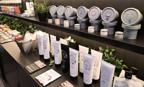 そのため、カップ型の洗顔石鹸とハンドクリームは3〜4カ月に1回の頻度で限定の香りを投入し、年間で最も売れた限定商品と、売れなかった定番商品を入れ替える。緒方社長は冗談めかして「僕たちが飽きちゃうんですよね」と言うが、ブランドの鮮度を保ち続ける上で的を射た仕組みだ。泡盛の酒粕やサンゴ由来の成分など、近年も沖縄産素材の開拓を続けている。