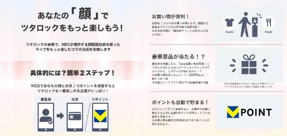 NECは、3月20〜22日に千葉市の幕張メッセで開催される音楽イベント「Vポイント presents ツタロックフェス2026」において、顔認証を活用した3つの施策を実施する。決済やポイントの自動付与、優先有料エリアの運営などを顔認証で行うことで、イベント前後を含む一連の顧客体験を向上させる狙いだ。