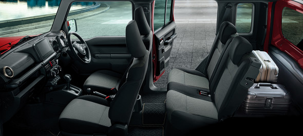 ジムニーノマドの室内。全長を340ミリ延長した分は、ほぼラゲッジスペースに充てられている。それでもリアシートの座り心地や乗降性なども向上しており、ファミリーカーとしても使えるようになった(写真:スズキ)