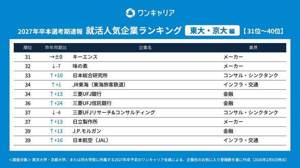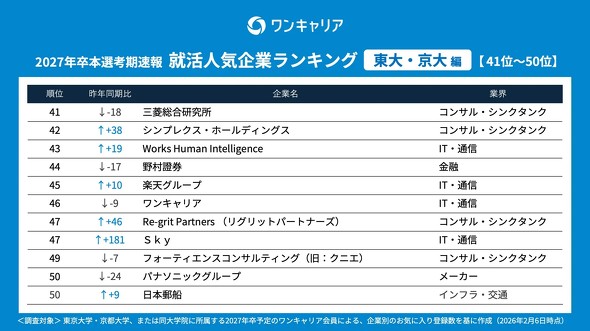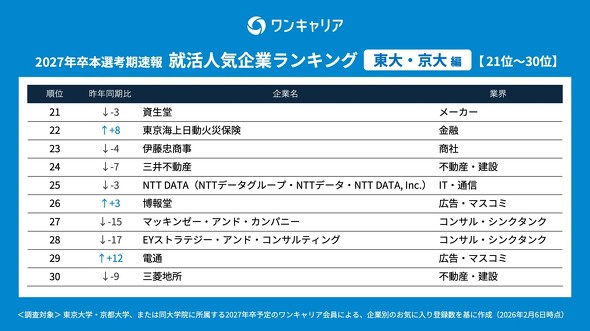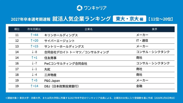 東大・京大生が選ぶ人気企業ランキング、1位は? コンサル一強に陰り(2/2 ページ)