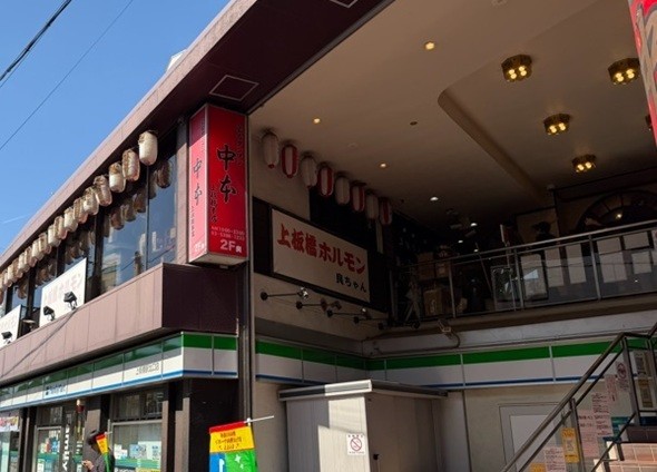 ある日曜日、池袋駅から20分ほど揺られて東武東上線上板橋駅に到着。蒙古タンメン中本 上板橋本店は、駅前の線路沿いの飲食ビルの2階にありました。