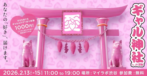 会場には、ピンクの鳥居などを設置したフォトスポット「ギャル神社本殿」を設けた。この他、恋や推し、自分自身へのエールを後押しする「愛のアゲみくじ」(無料)、ギャル巫女(みこ)が思いを受け止め、祈りに変える「好きを届けるアゲ祈り体験」(1000 円・お守り付き)を用意した。